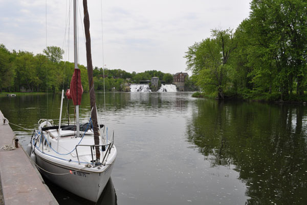 At the end of the journey I tied up at the town dock with the falls and yacht basin in the background.