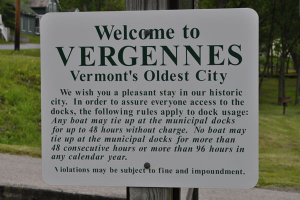 After an overnight excursion to Partridge Harbor, I decided to take a look at nearby Otter Creek and the town of Vergeenes. The creek enters the lake a couple of miles north of Partridge and is navigable for the 7 miles between Champlain and the water falls in the town of Vergennes. The town has two docks,free to visitors, with running water and electrical hookups. One of the docks is on the site of a historic ship yard employed by the Americans to build a fleet to fight the British during the war of 1812. The falls were harnessed to power the shipbuilding efforts. The Saratoga was built there in a mere 40 days.